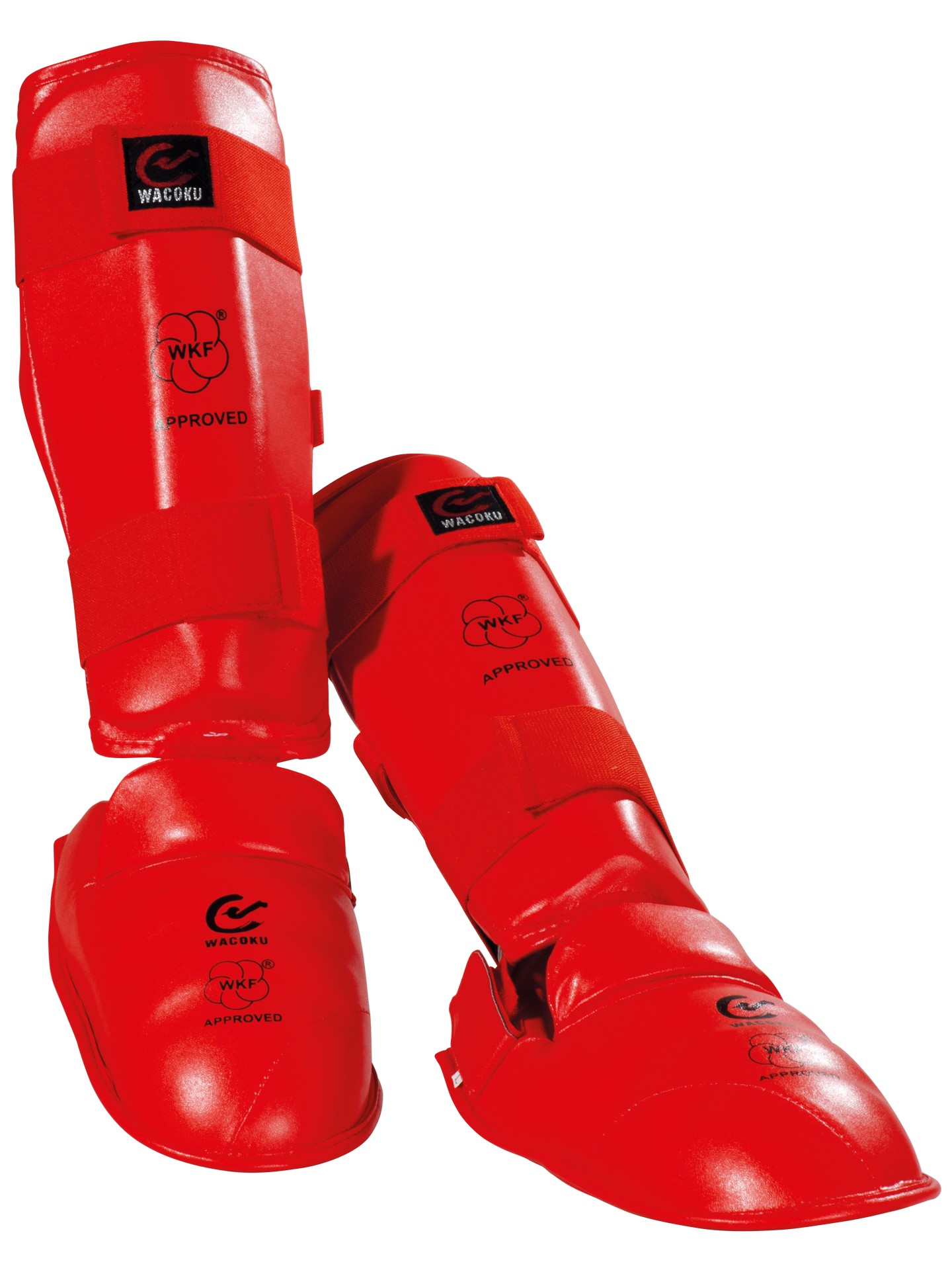 - The WKF-approved karate shin and instep protectors are made of high-quality PU material.