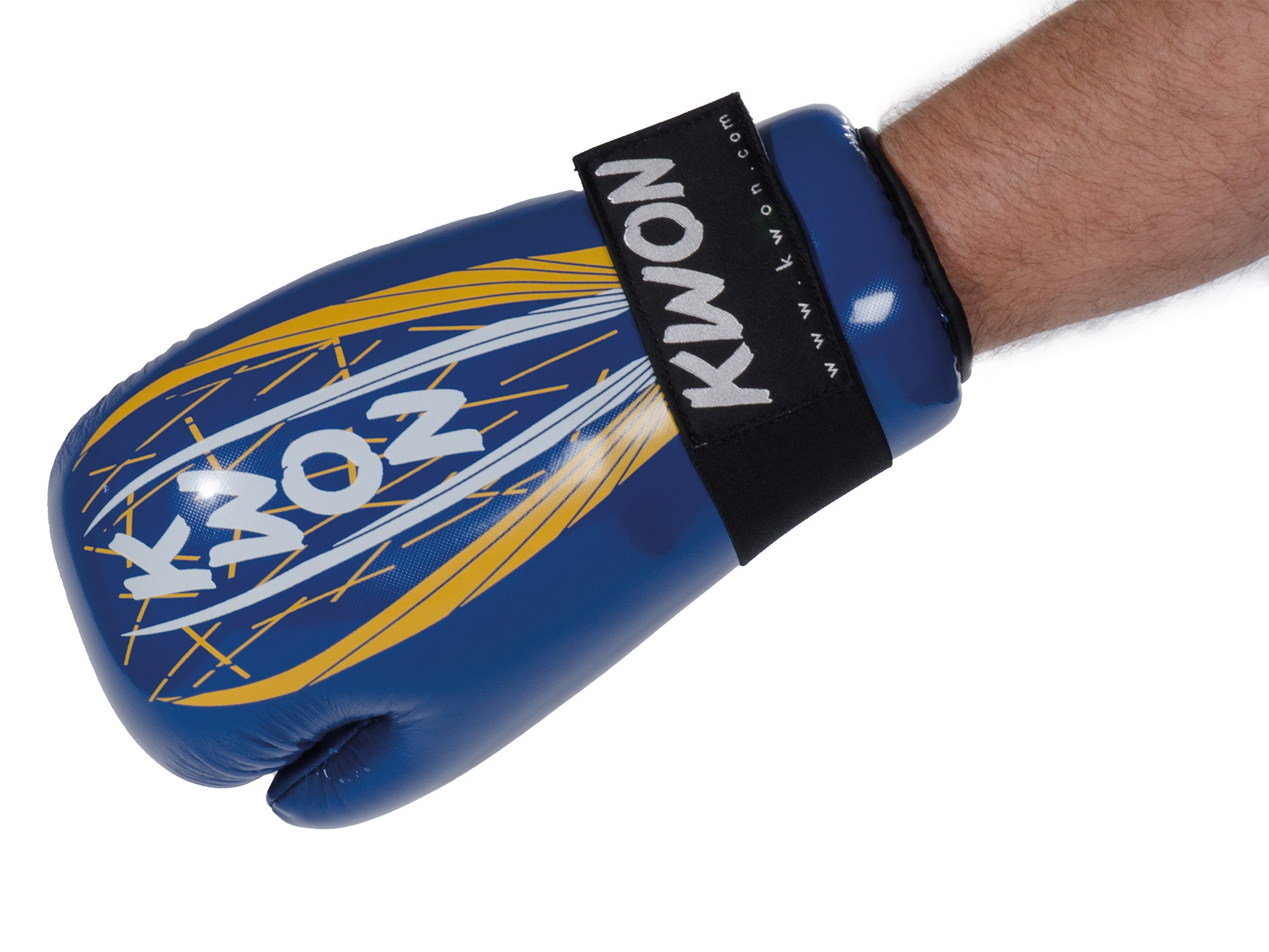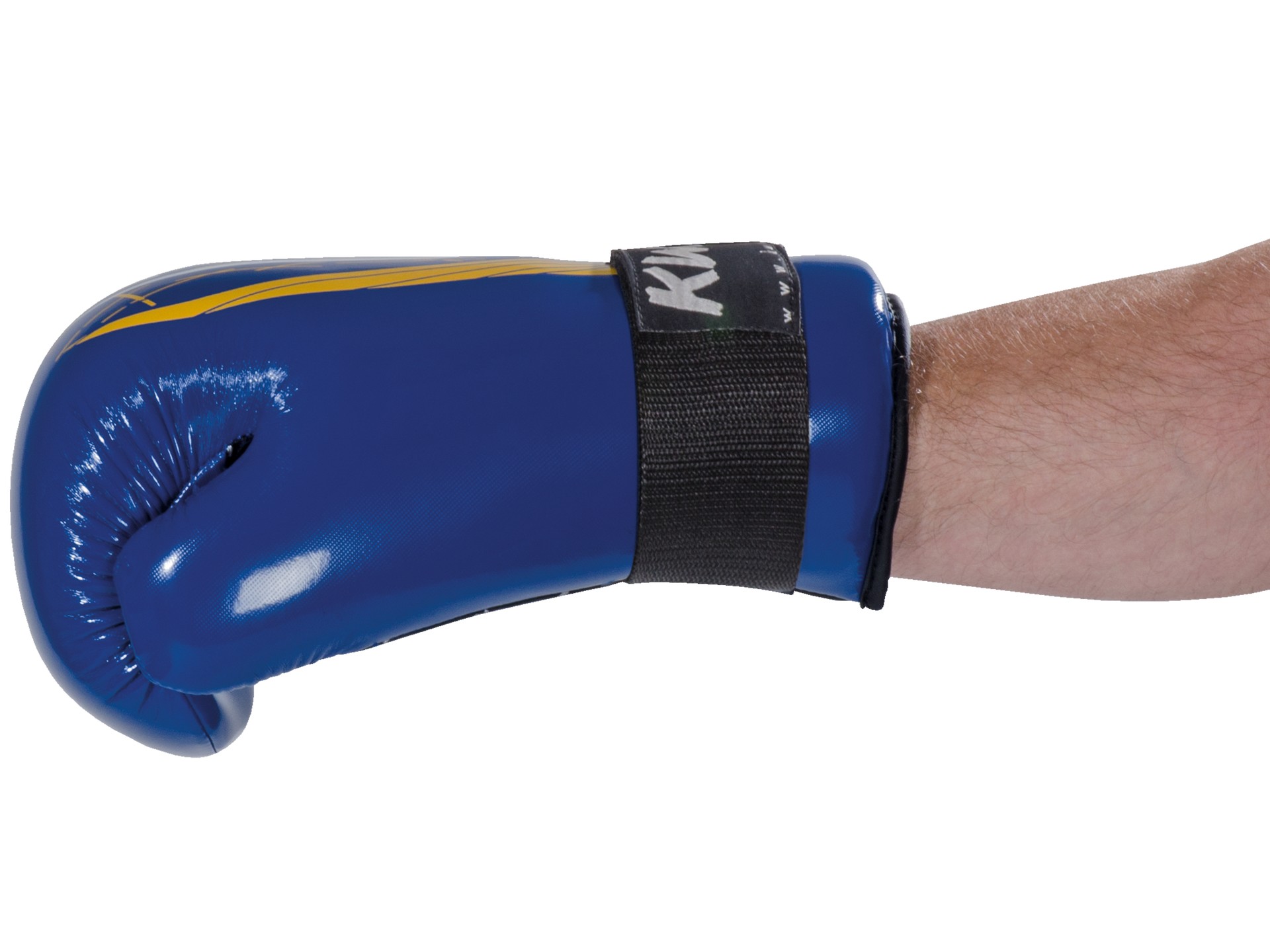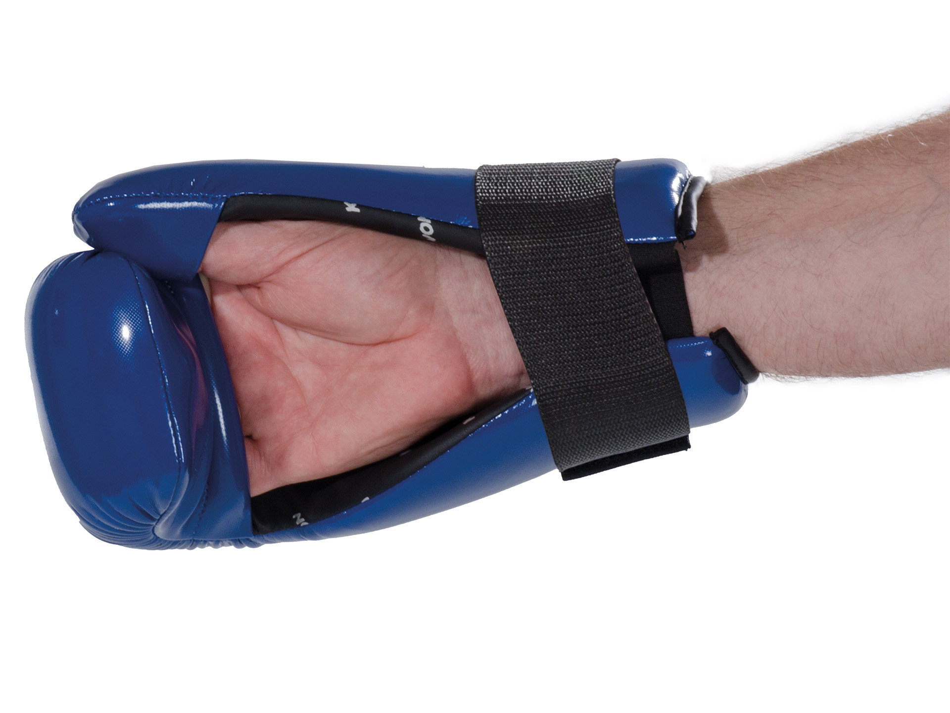 Mit dem breiten Klettverschluss lässt sich der Handschutz genau an das Handgelenk des Pointfighter anpassen.